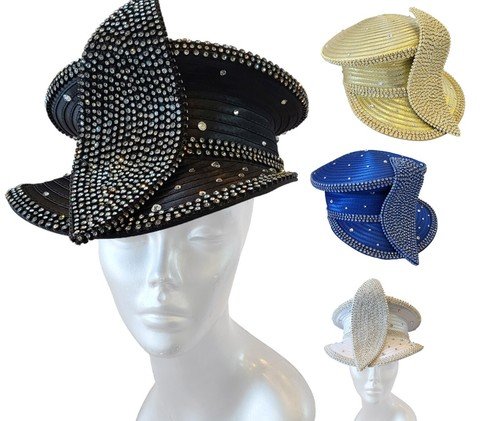 Women’s designer couture satin ribbon cap church Kentucky derby hat rhinestones