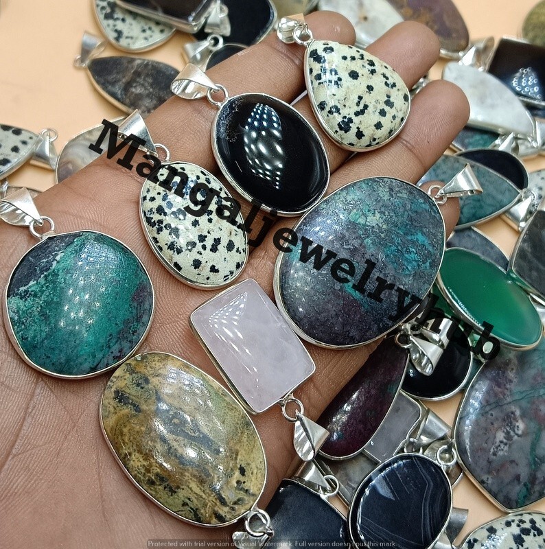 Wow Rose Quartz & Mix Gemstone 10PCS Pendants 925 Silver Plated Bulk Jewelry Lot